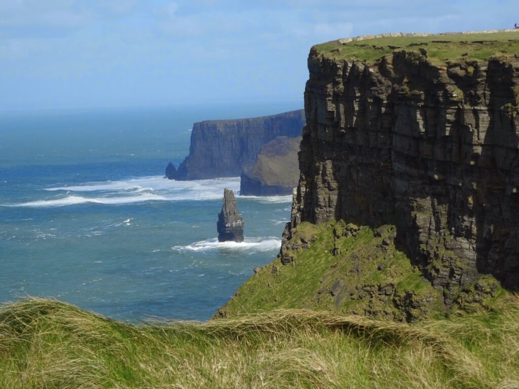 As the morning passed the clouds cleared and the sun came out; by the time we got to the Cliffs of Moher, the weather was perfect for a clifftop walk - sunny, blue sky with small clouds, crashing waves with white tops.
